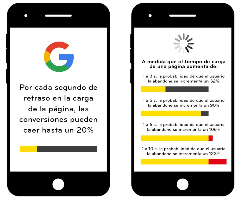 - Una página web que tarda en cargar una eternidad (más de 5 segundos ya es demasiado tiempo de carga), y puede verse como una o varias imágenes de la página van apareciendo poco a poco.